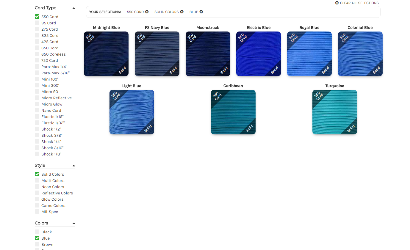 We will be gradually rolling out this new look and better functionality to each of our product category pages, such as our main paracord page, so keep checking back!